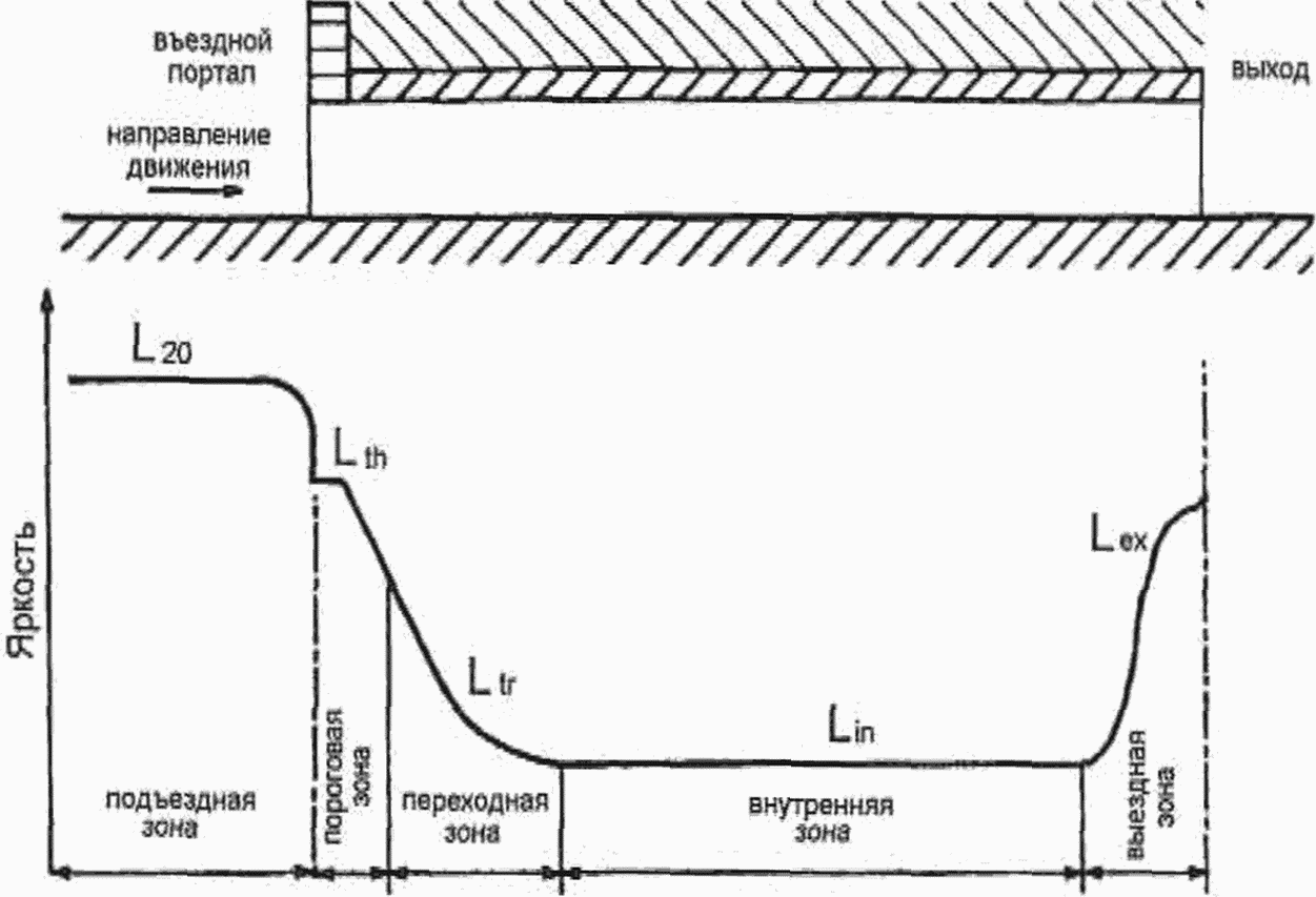 3.2 автодорожный тоннель: Часть дороги для проезда автомобильного транспорта, имеющая перекрытие над проезжей частью, которое препятствует естественному освещению дорожного покрытия и тем самым ухудшает водителю условия видимости дорожной обстановки.