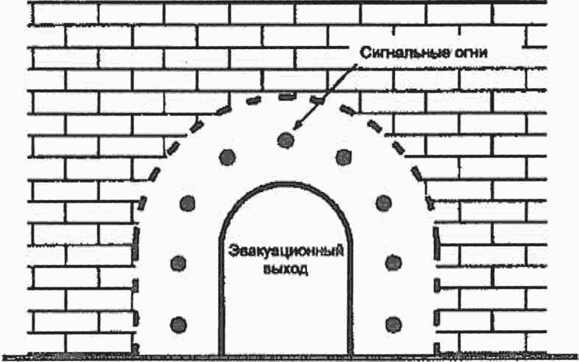 Пример расположения сигнальных огней относительно эвакуационного выхода показан на рисунке П.1.