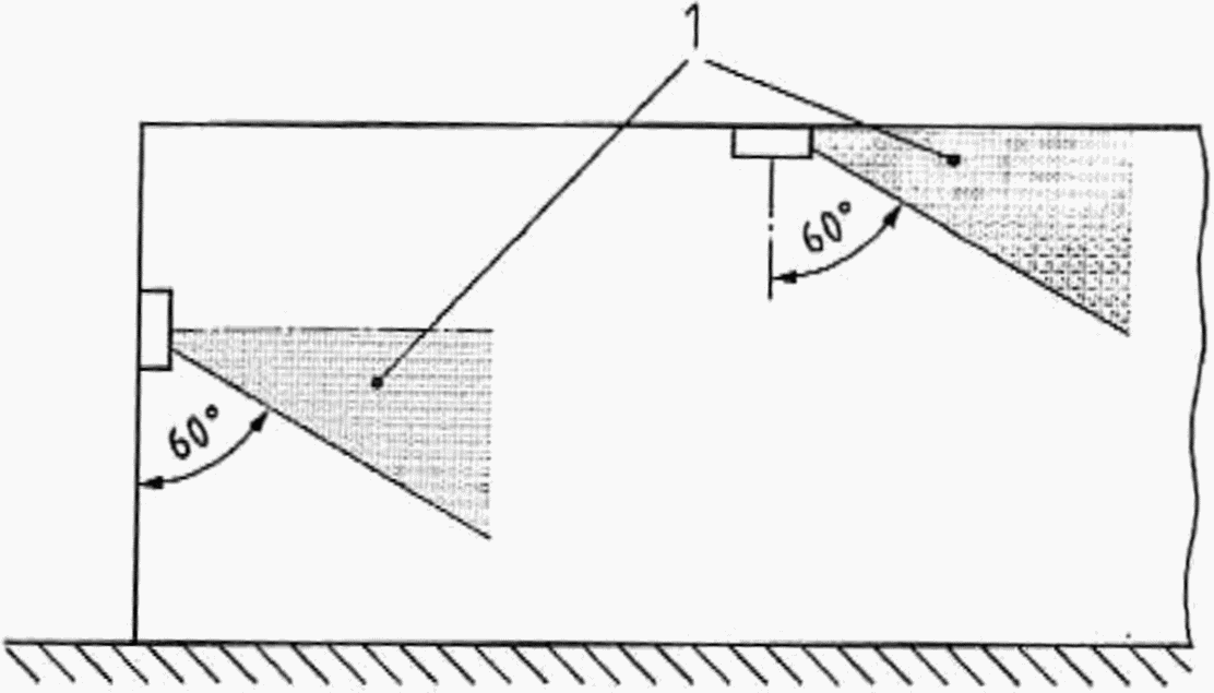 Направления, по которым ограничивается сила света световых эвакуационных указателей, лежат внутри конуса с раскрытием 2 x 15° относительно линии зрения водителя в пределах шага расстановки эвакуационных указателей. На рисунке Н.1 показаны (в плане) области ограничения силы света I указателей направления эвакуации.