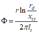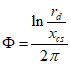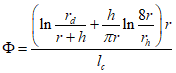 - коэффициент для определения расчетного радиуса совершенной скважины, эквивалентной по дебиту действительной несовершенной скважине;