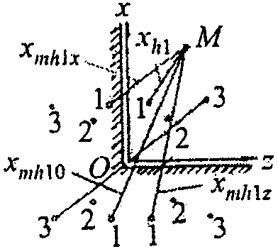 - среднее расстояние от расчетной точки до зеркального отображения скважин относительно оси x, м;