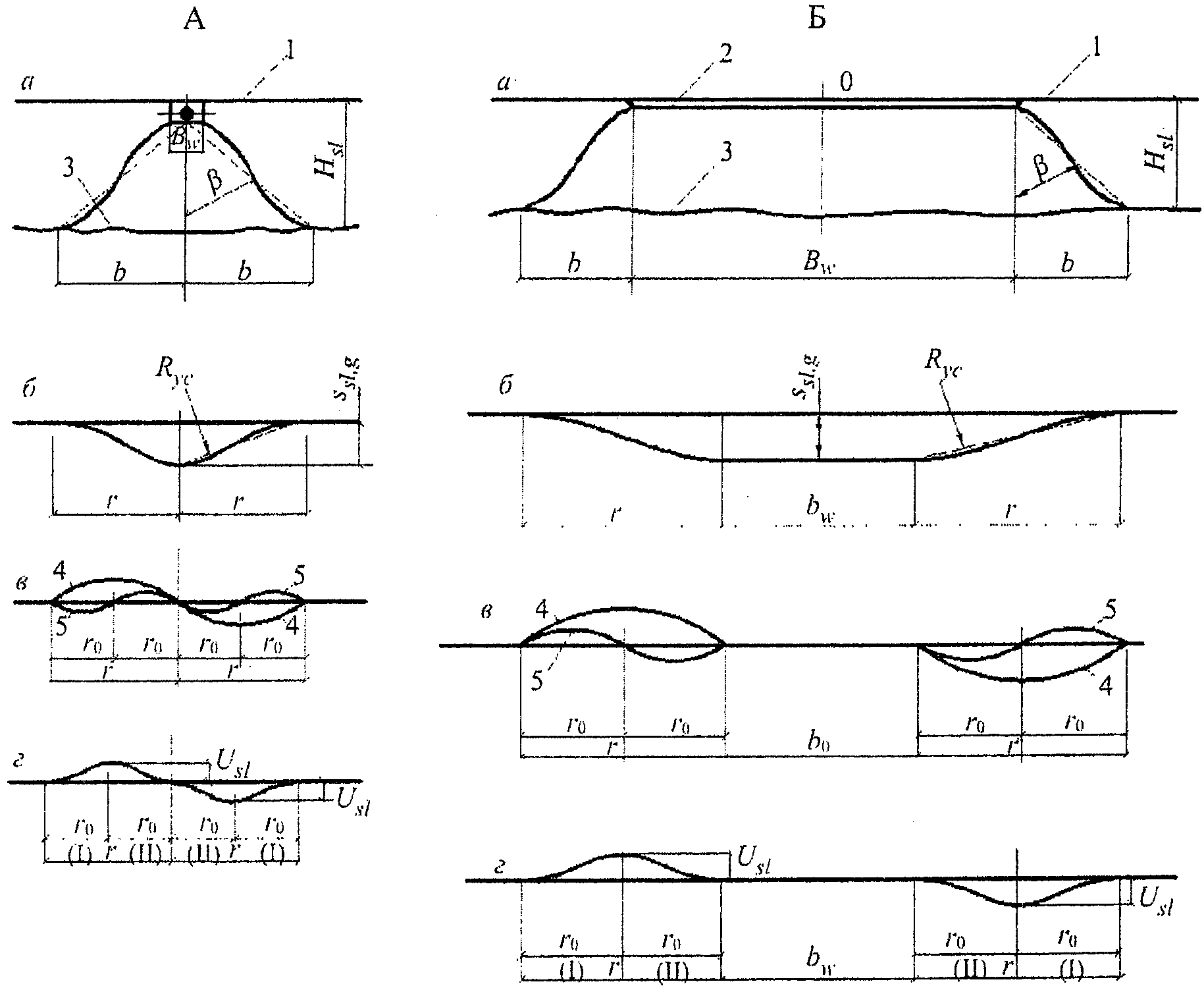 Рисунок К.2. Схемы к расчету просадок: