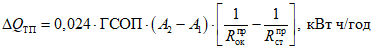 , обусловленную изменением системы естественного освещения помещения, с учетом притока тепла от солнечной радиации через светопроемы по формуле