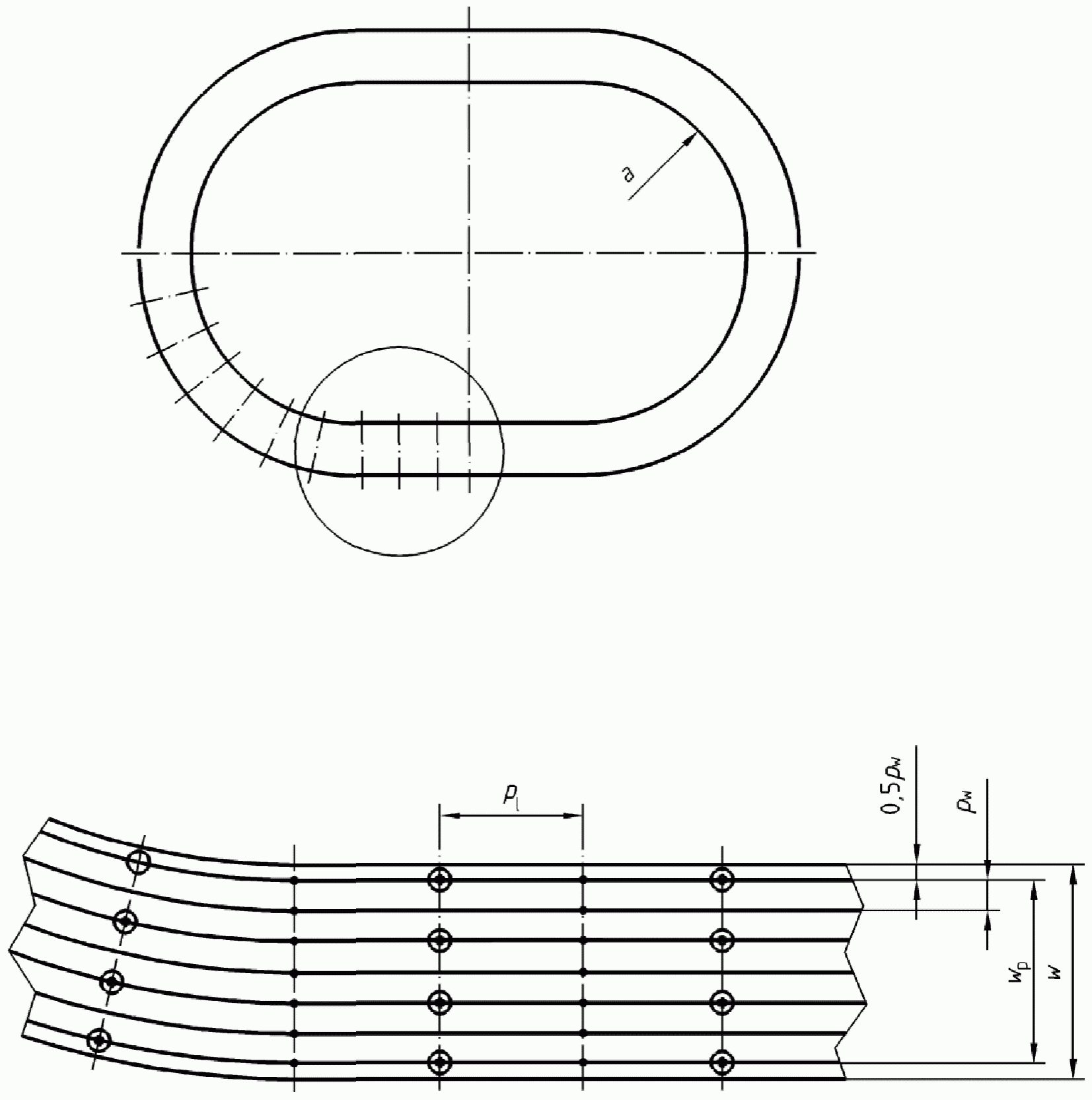 a - внутренняя граница трека; w - ширина трека;