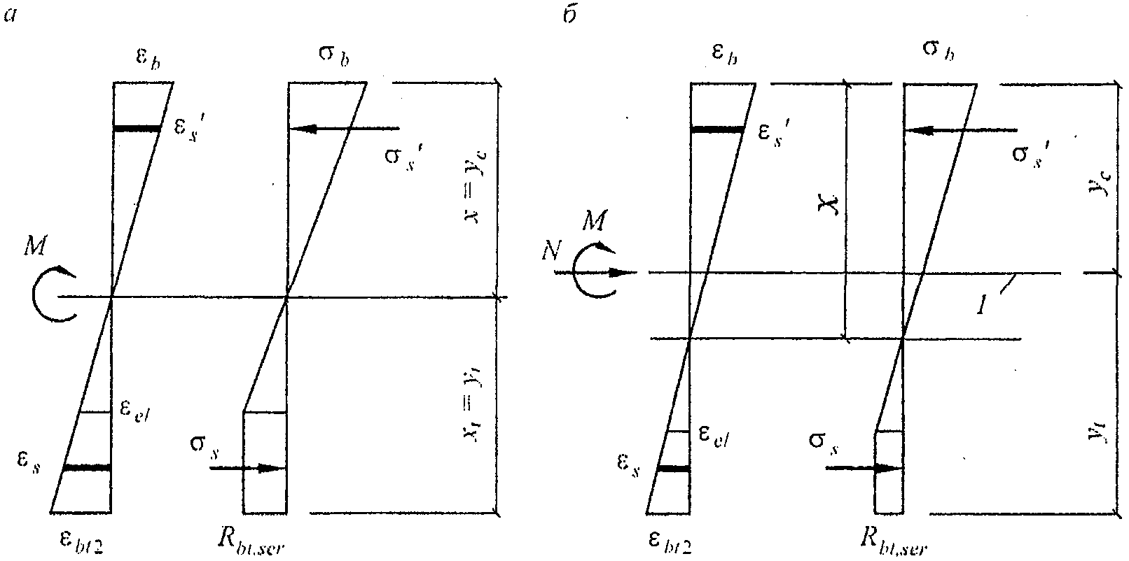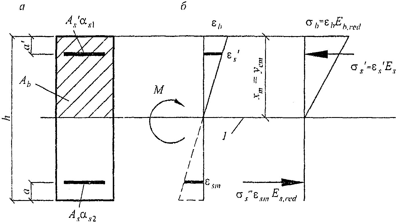 Расчет на выносливость выполняют по упругой стадии с трещинами. Работу растянутого бетона и сжатой арматуры не учитывают, и их прочность на выносливость не рассчитывается.