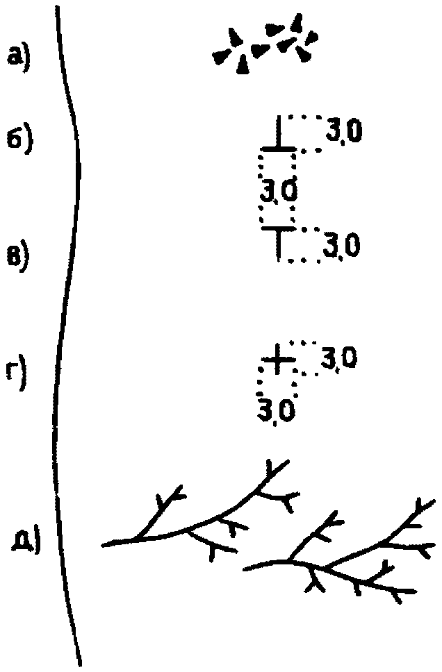 Отдельные могилы (а), кресты и другие знаки с религиозными изображениями имеющие значение ориентиров (б) | ![]() | |