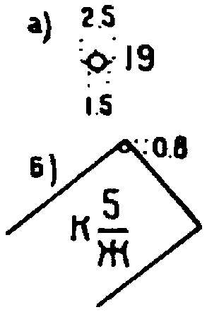 Нивелирные знаки а) реперы фундаментальные (числитель отметка центра, знаменатель отметка земли, 28 - номер знака) | ![]() | |
