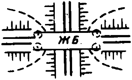 в) пункты (реперы) закрепления разбивочной сетки для строительства и осей зданий и сооружений [15] | ![]() | |