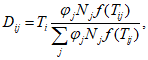 ti - средние затраты времени на полное передвижение в город-центр из i-й зоны.