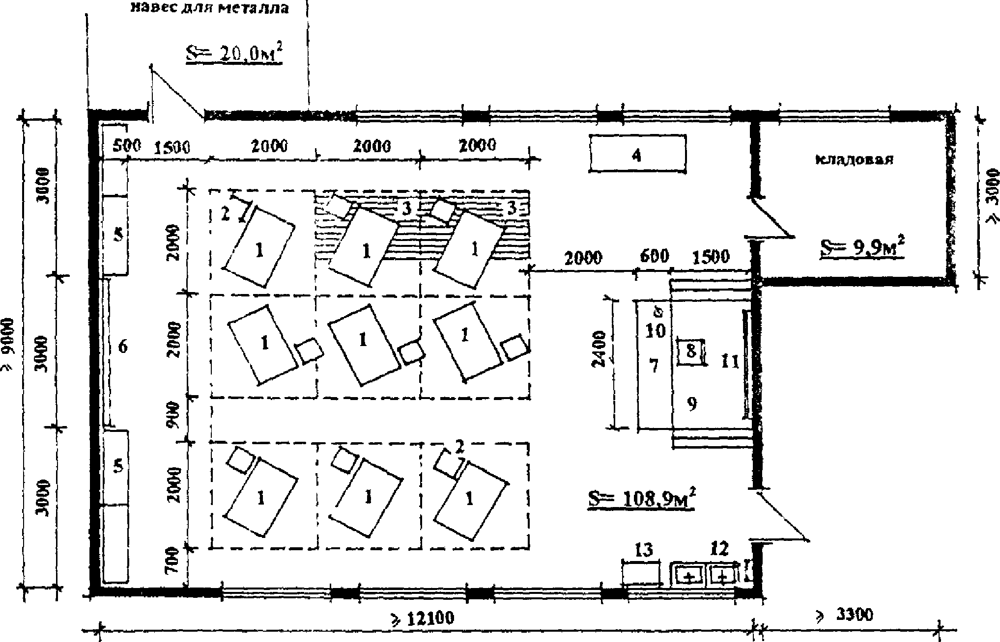 4.10. На территории учебно-производственной зоны СПУО, занимающихся подготовкой специалистов по металлообработке, следует размещать навесы площадью не менее 100 м2 каждый, для хранения металлолома с площадкой для разгрузки и вывоза мусора площадью 20 м2 и организацией подъезда к ней на машине. Производственная зона предусматривается в непосредственной близости от специального выхода из мастерских.