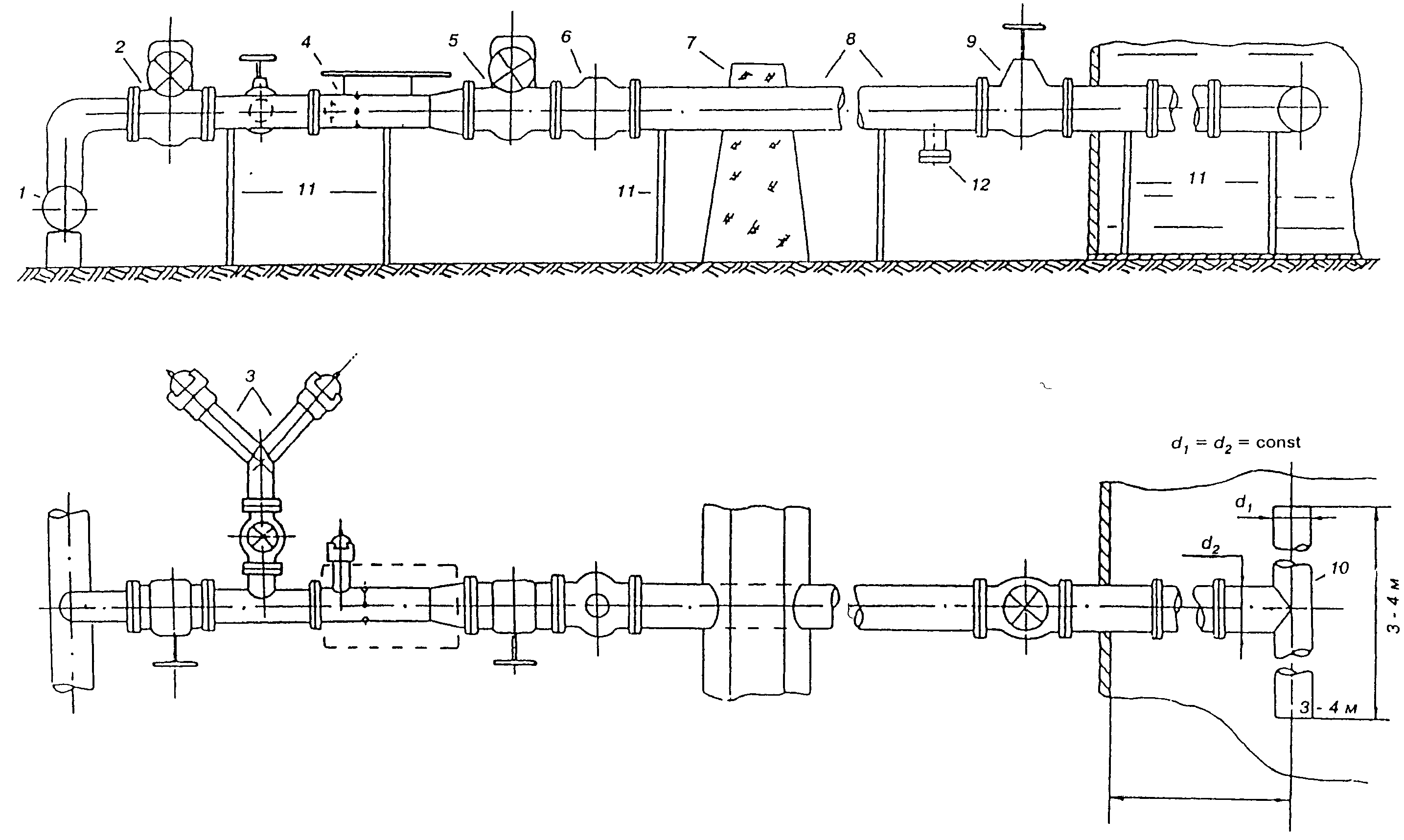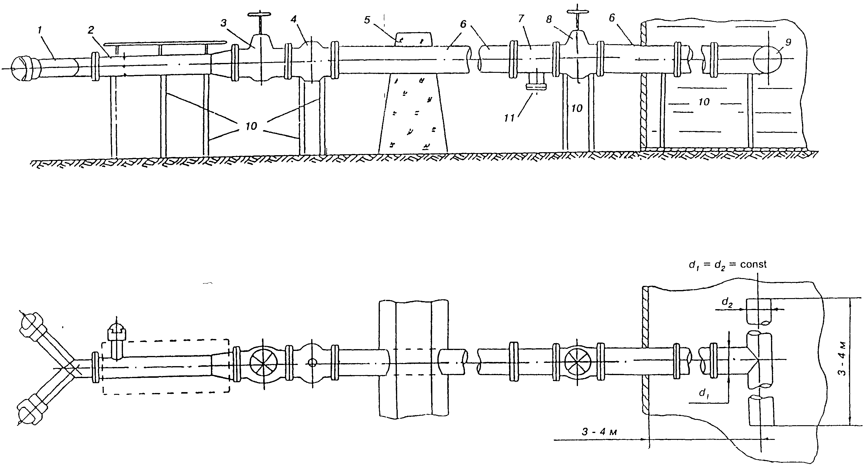 и защитным кожухом; 3, 8 - задвижки; 4 - обратный клапан;