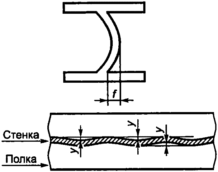 Прогиб стенки f, волнистость, коробоватость стенки y | При высоте h: | ![]() | |