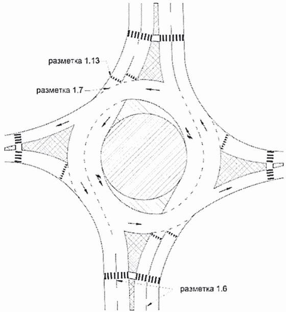 - пешеходного перехода и (или) граничной линии на подходе к кольцевому пересечению (рисунок К.2);