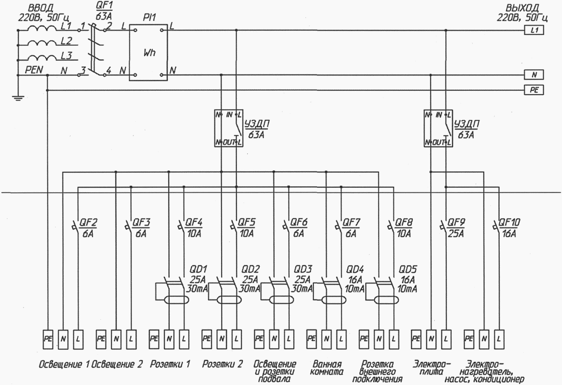 В.4.7 Подключение УЗДП в электрических щитках квартир