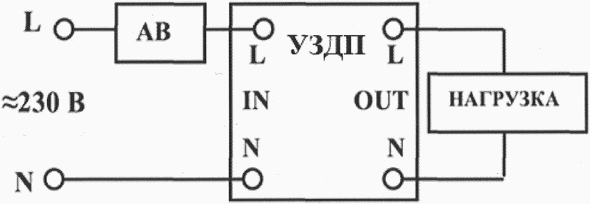 в) Подключение УЗДП с АВ и устройством защитного отключения (УЗО)