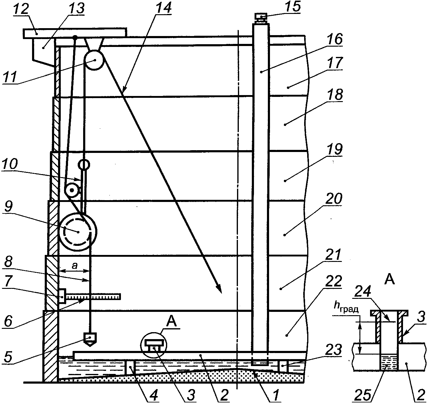 - степень наклона резервуара.