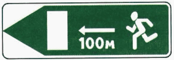 5.7.24. Знаки 6.21.1 и 6.21.2 "Направление движения к аварийному выходу" применяют для указания направления движения к аварийному выходу в тоннеле и расстояния до него. Знаки устанавливают на расстоянии не более 50 м друг от друга на высоте от 1,0 м до 1,5 м на боковых стенах тоннелей".