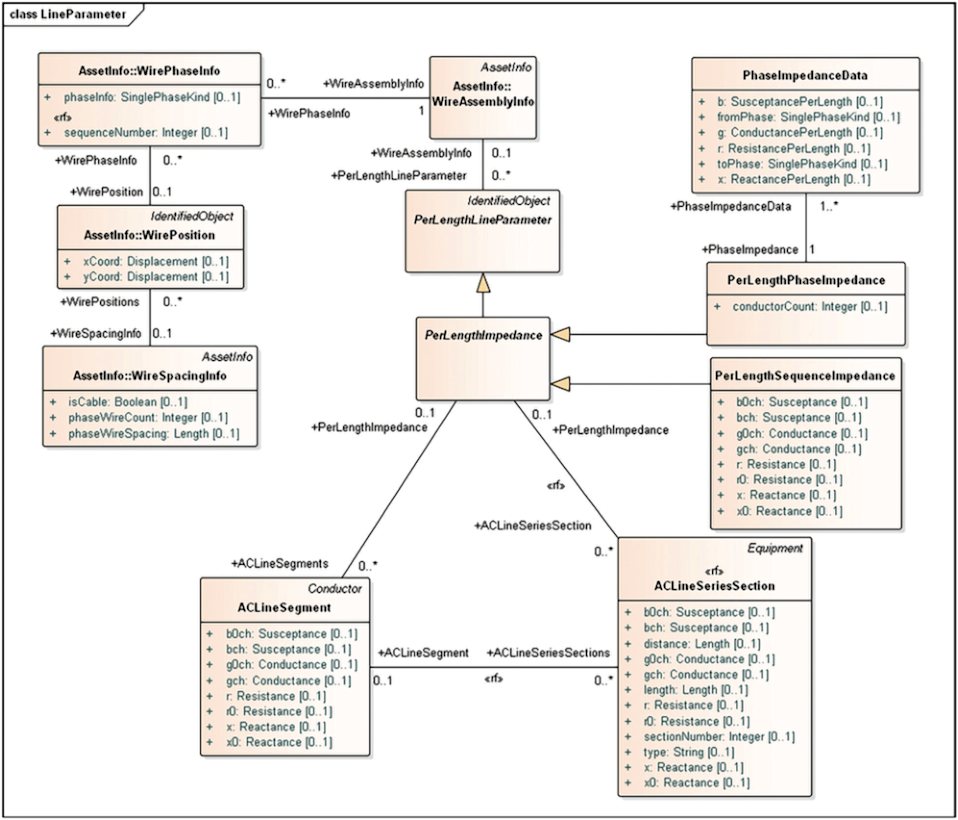 [4] в части добавления класса ACLineSeriesSection. Данное расширение предназначено для совмещения двух уровней детализации - неоднородного участка линии переменного тока (ACLineSegment), который помимо электрических параметров, формирует своими полюсами (Terminal) топологическую связность электрической сети, а также однородной части неоднородного участка линии переменного тока (ACLineSeriesSection), предназначенного исключительно для описания параметров и не участвующего в формировании топологии.