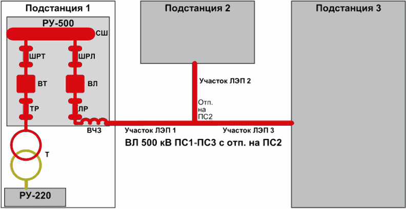 Примечание - Оборудование подстанций 2 и 3 не показано с целью упрощения.