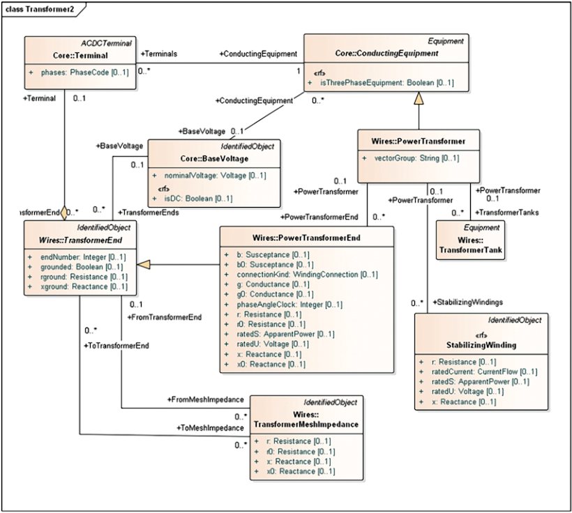 Профиль информационной модели линий электропередачи и электросетевого оборудования напряжением 110 - 750 кВ содержит также модель, необходимую для описания силовых трансформаторов (см.