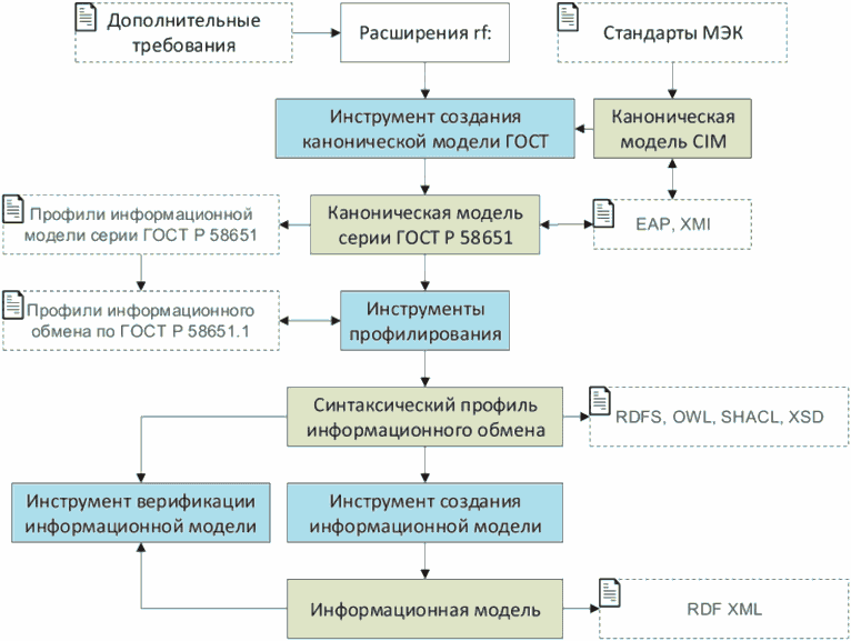 Каноническая модель серии ГОСТ Р 58651 в цифровом формате содержит в себе совокупность профилей информационной модели и является основой для формирования профилей информационного обмена.