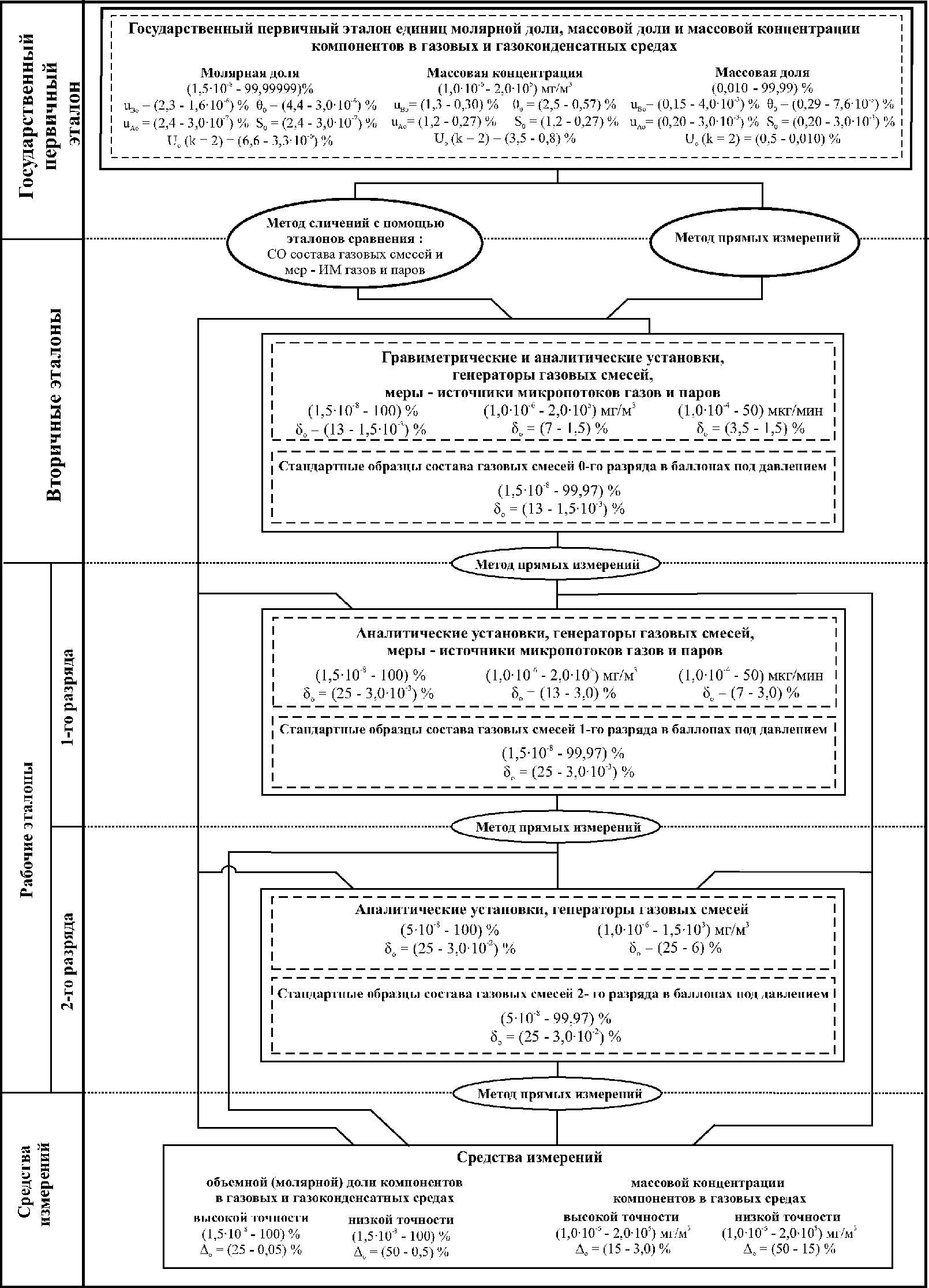 Графическая часть государственной поверочной схемы для средств измерений содержания компонентов в газовых и газоконденсатных средах представлена в
