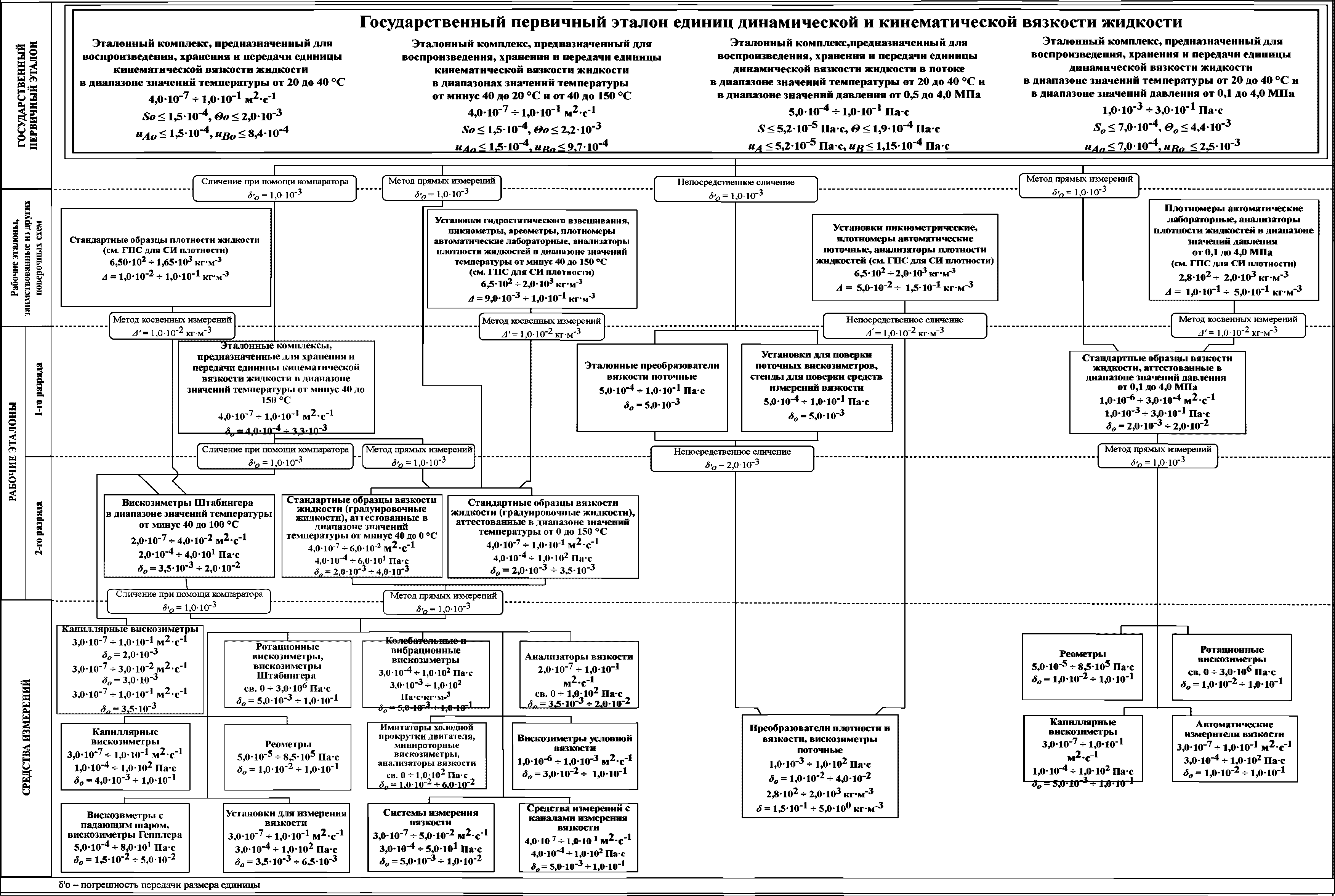 -1) - от Государственного первичного эталона единиц динамической и кинематической вязкости жидкости (ГЭТ 17-2018) (далее - ГПЭ) рабочим эталонам и средствам измерений с указанием погрешностей и основных методов передачи единицы.