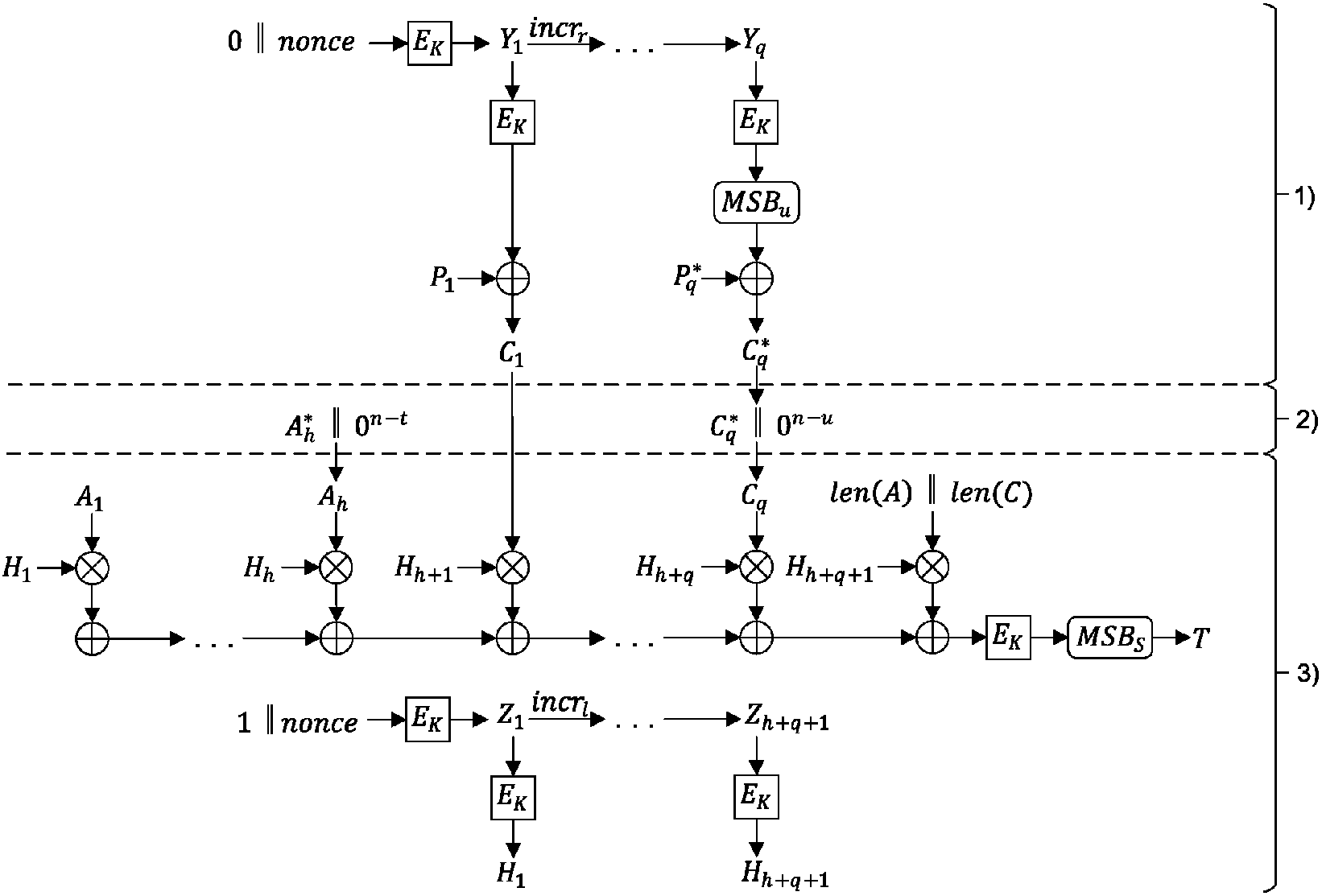 Б.2.2 Дополнение последнего блока дополнительных имитозащищаемых данных и последнего блока шифртекста до длины n