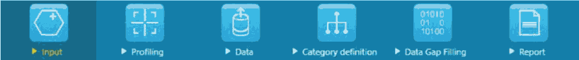 При запуске программы QSAR Toolbox открывается панель инструментов. Для начала работы необходимо нажать кнопку "Ввод данных" ("Input")