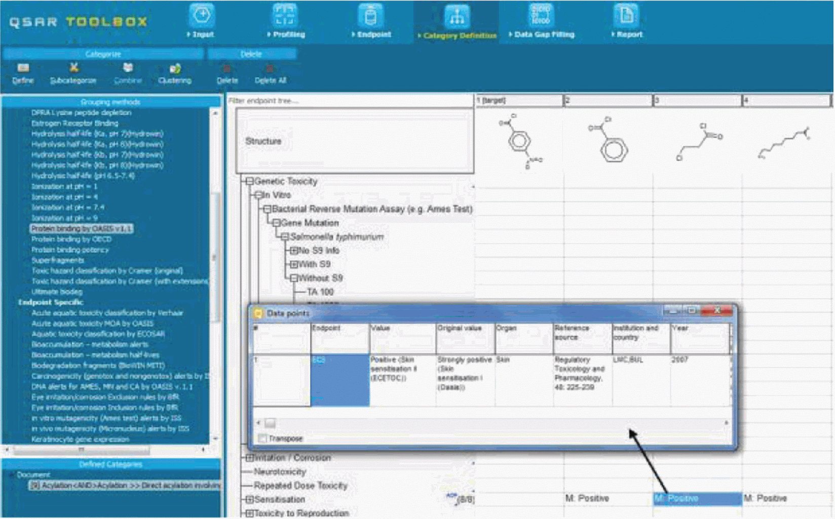 Пример - Рассмотрим цель, состоящую из того, чтобы найти аналоги с имеющимися экспериментальными результатами по сенсибилизации, которые могут быть использованы в методе аналогий для нахождения необходимой информации.