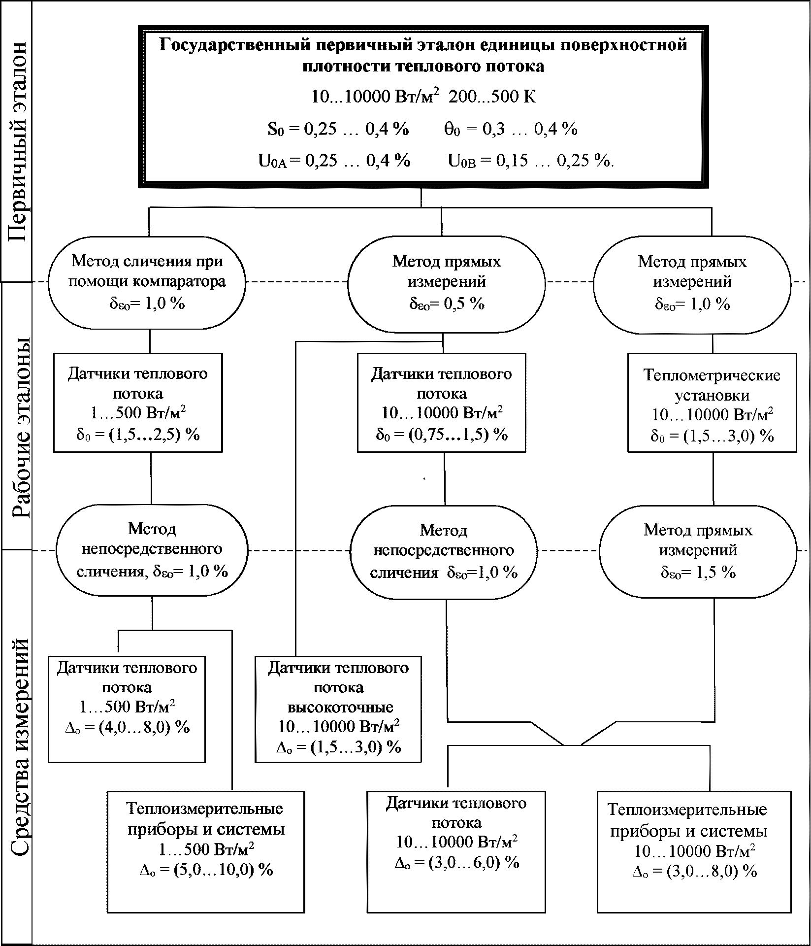Графическая часть Государственной поверочной схемы для средств измерений поверхностной плотности теплового потока в диапазоне от 1 до 10000 Вт/м