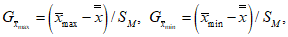 5.2.1.2 Для проверки, не является ли наибольшее (наименьшее) значение выбросом среди всех средних арифметических, полученных в лабораториях, участвующих в МЛС, используют критерий Граббса