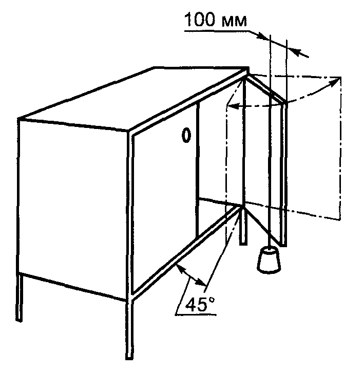 "Настоящий стандарт распространяется на двери мебельные с вертикальной и горизонтальной осью вращения и устанавливает методы испытания их крепления на жесткость, прочность, долговечность.