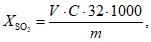 32 - молярная масса эквивалента диоксида серы, г/моль;