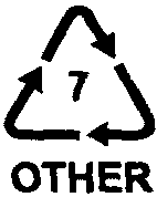 5 Цифровым идентификационным кодом "7" маркируют все изделия из полимерных материалов, которые не попадают в диапазон с "1" по "6", или изделия, состоящие из композиции различных полимерных материалов (кроме смесей пластмасс полиолефинового класса), или изделия из пластмассы со встроенными частями (элементами) из стекла, металла и дерева, или изделия, изготовленные из термоэластопластов, и обозначают как "other".