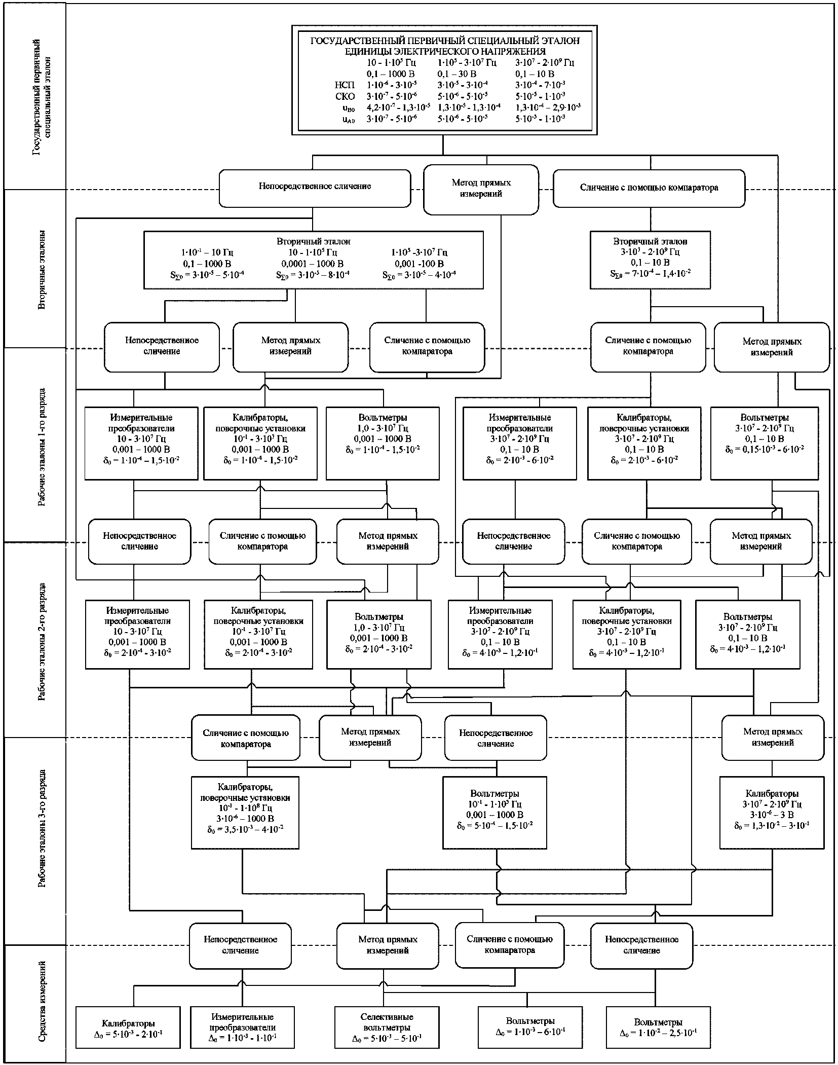 2.5. Для обеспечения воспроизведения единицы электрического напряжения в диапазоне частот от 10 до 2·109 Гц при уровнях напряжения от 0,1 до 1000 В должны соблюдаться правила содержания и применения государственного первичного специального эталона, утвержденные в установленном порядке.