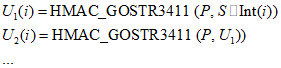 Uc(i) = HMAC_GOSTR3411 (P, Uc-1). (2)
