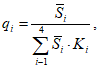 Б.1.2 Весовой коэффициент ОВ i-й категории (qi) рассчитывают по формуле