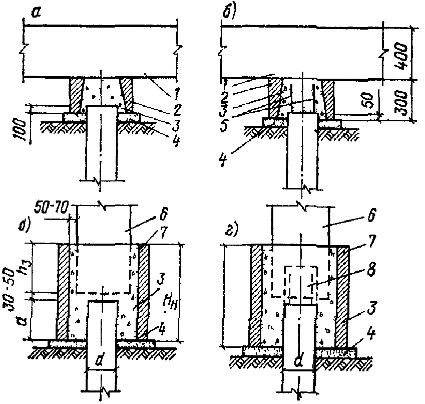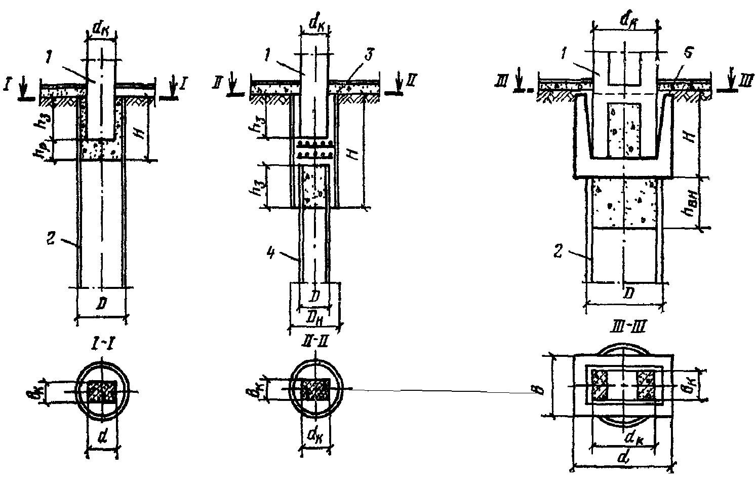 в) сваи набивные бетонные и железобетонные, устраиваемые в грунте на месте;