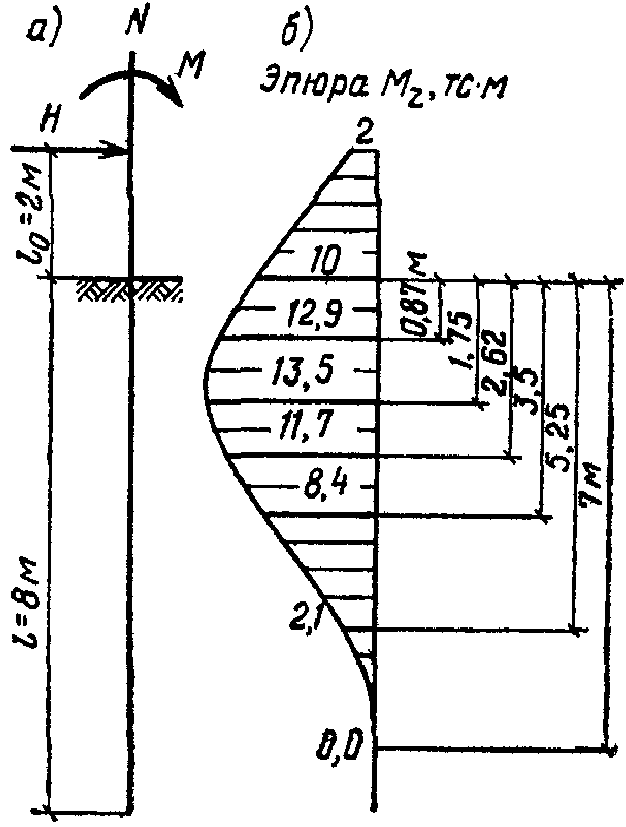 нагрузки (в случае вертикальной сваи - вертикальная и горизонтальная нагрузки) и момент