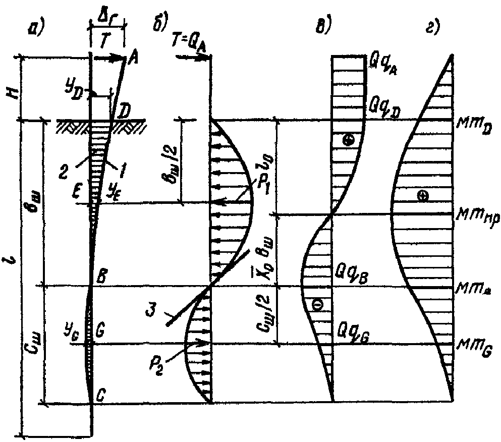 рис. 4) следует производить, как для вертикальной сваи согласно указаниям