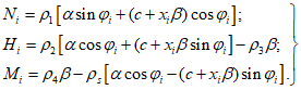 действующие в месте сопряжения с ростверком на каждую сваю ряда, который на плоскую расчетную схему проектируется как одна (i-я) свая, определяются по формулам: