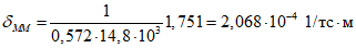 формулам (15) настоящего Приложения определяем перемещения сечения сваи в уровне подошвы ростверка от единичных усилий, приложенных в том же уровне: