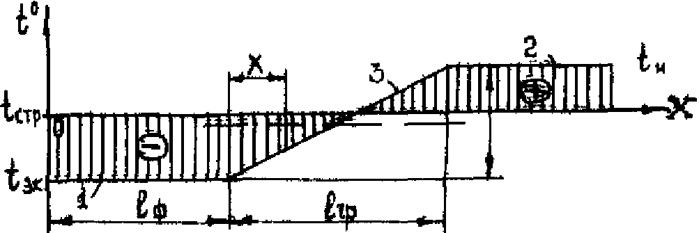 Рис. 1. Профиль температур (T) ОПГ на участке трубопровода
