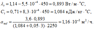 приведенный расчетный коэффициент температуропроводности, м2/ч,