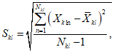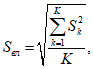 . Причем, если проверка по критерию Фишера показала однородность соответствующих СКО, то межлабораторную воспроизводимость методики биотестирования вычисляют как средневзвешенное значений межлабораторной воспроизводимости на эталонных веществах по формуле