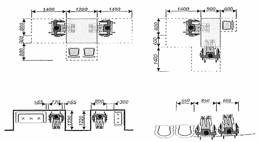 - минимальные размеры универсальной кабины: ширина 2,20 м, глубина 2,25 м;