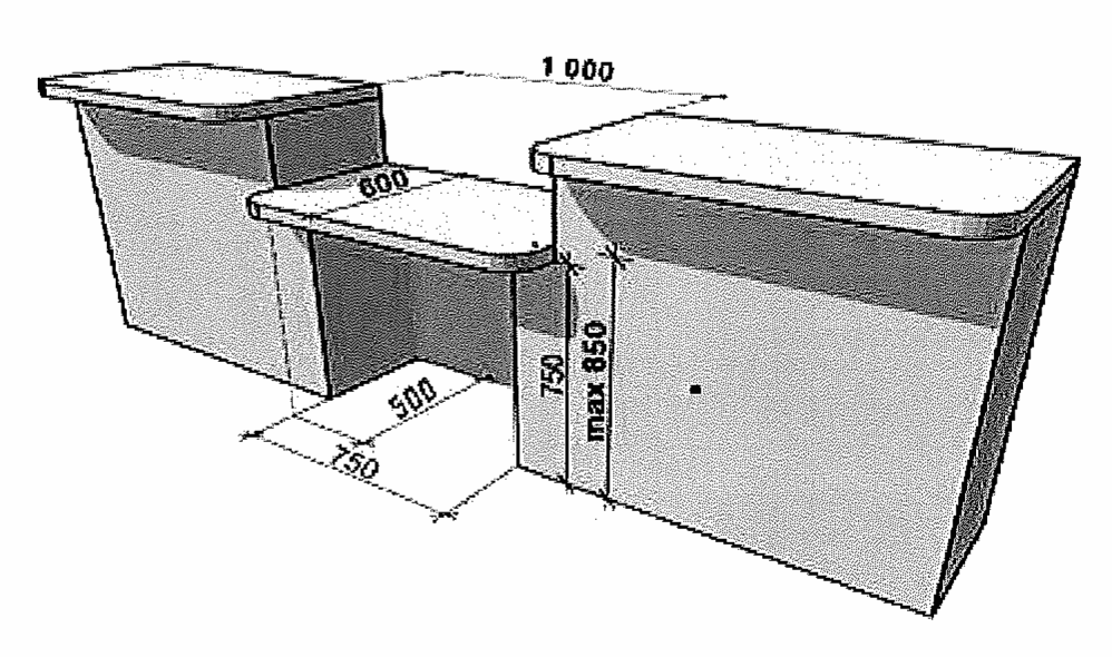 - "L"-образный поручень со стороны стены, состоящий из горизонтального и вертикального элементов, длиной 0,75 м на высоте 0,85 м от пола и подъемный (откидной) поручень со стороны пересадки на унитаз на высоте 0,85 м от пола, с фиксацией в поднятом положении. Допускается использование двух подъемных (откидных) поручней;
