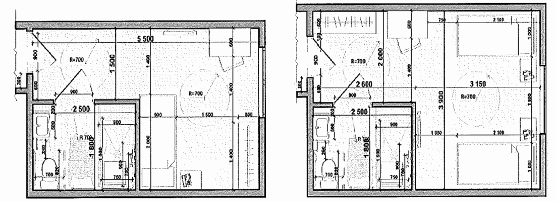 - все пути движения и проходы в номере должны иметь ширину не менее 0,90 м;