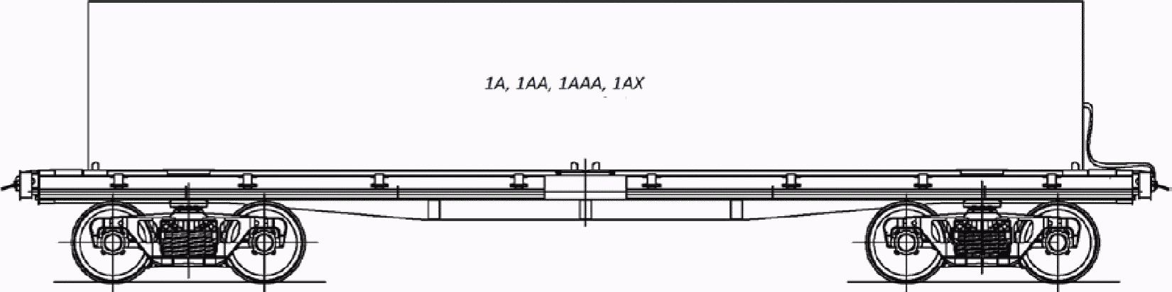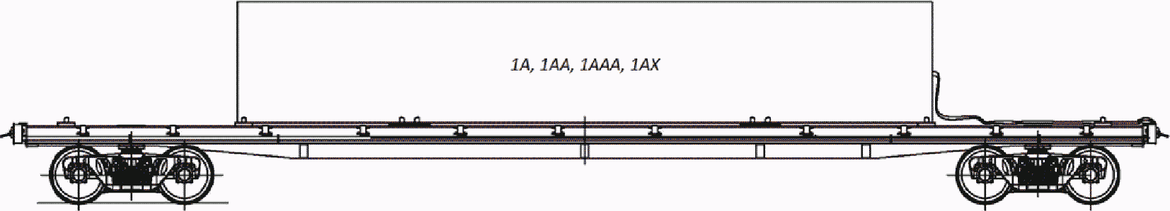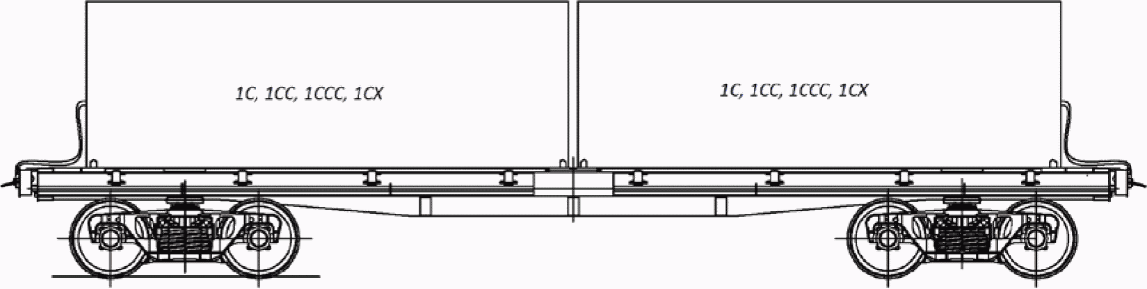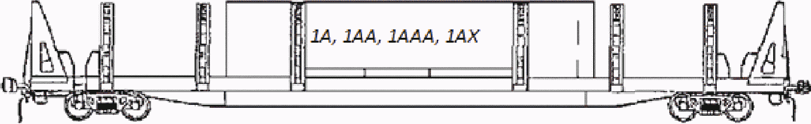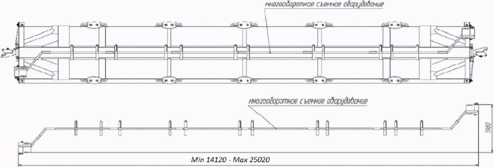 5. Многооборотное съемное оборудование позволяет размещать крупнотоннажные рефрижераторные контейнеры типоразмеров 1A, 1AA, 1AAA, 1AX, 1C, 1CC, 1CCC, 1CX, груженые и порожние в различных сочетаниях. Суммарная масса многооборотного съемного оборудования и контейнеров, расположенных на платформе, не должна превышать трафаретную грузоподъемность платформы.